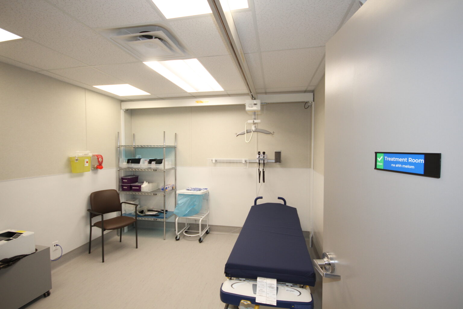 The clinic consists of four 11’-9” x 60’ modules side-by-side for a total building area of 2,880 sq ft. The clinic will be located on this site for approximately 2-3 years. The design responds to the requirements and standards of Interior Health and was designed for the needs of the health staff and the comfort of the patients. To this end, the building is fully accessible both inside and out.