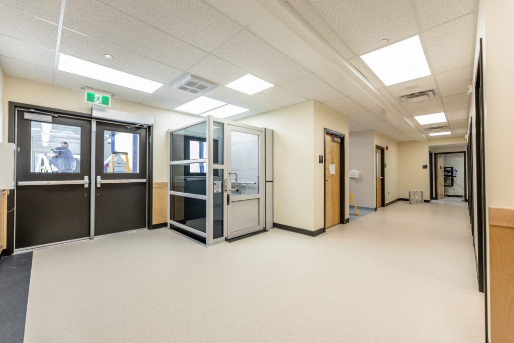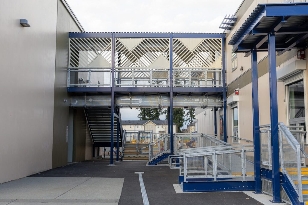It includes a skyway connecting the new structure to the main school’s second floor, washrooms on both levels, a small wheelchair elevator, and a versatile meeting space. This connected skyway means students in the original facility will be able to interact with students in the expansion without needing to worry about going outside in poor weather conditions.