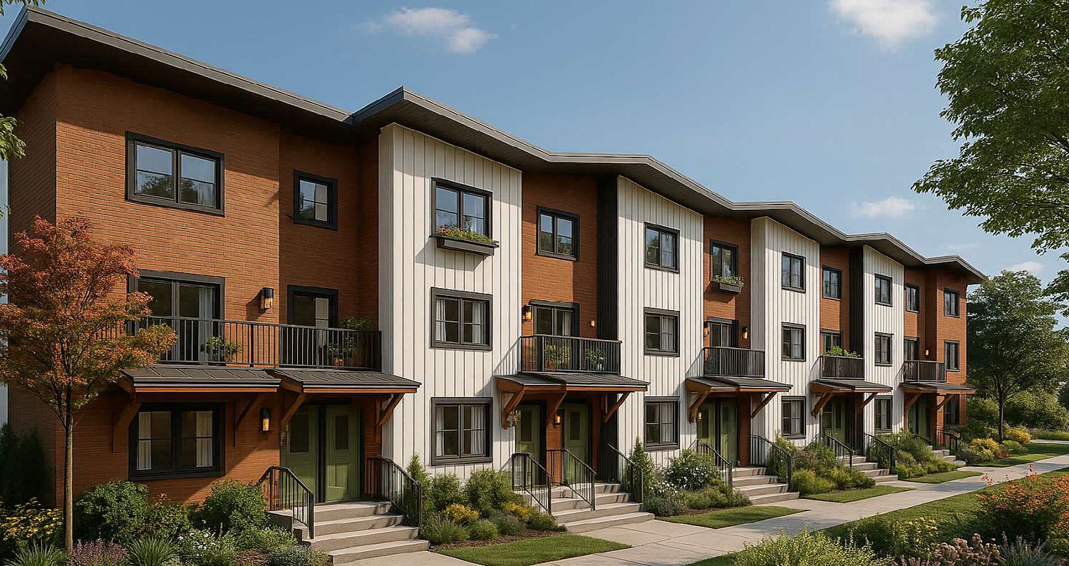 Our standardized housing plans include studio, 1 bedroom, 2 bedroom and 3 bedroom designs, as well as 3 bedroom over 1 bedroom three storey townhouse designs.